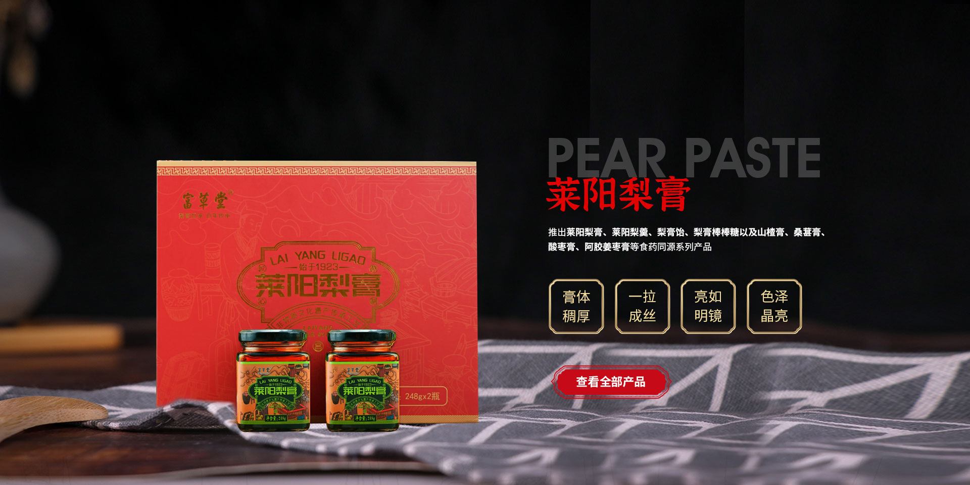 萊陽市昌榮食品有限公司成立于2003年,占地面積2萬余平方米,自有萊陽梨種植基地800余畝,年加工能力50萬噸,是一家集基地種植、原料倉儲、科技研發(fā)、生產(chǎn)加工、市場營銷、文化旅游為一體的集團化公司。 公司的“富草堂”品牌,源于1923年創(chuàng)辦的“富草堂大藥房”,距今已有百年歷史......